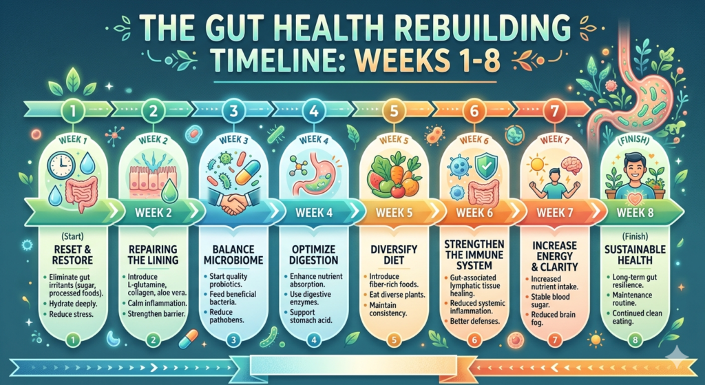 Scope note: This guide covers dietary and supplement based strategies for generally healthy adults focused on everyday digestive function. It does NOT address inflammatory bowel disease, Crohn’s, SIBO, or probiotic use during pregnancy. Those conditions require direct guidance from a gastroenterologist.