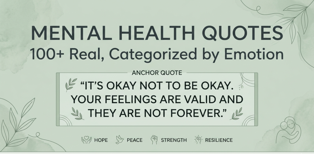 Mental health quotes are short, memorable statements about emotional and psychological wellbeing, often drawn from therapists, writers, public figures, and people with lived experience. Unlike generic motivational quotes, the most useful ones name something specific the texture of anxiety, the weight of a low day, or what healing actually looks and feels like in practice.
