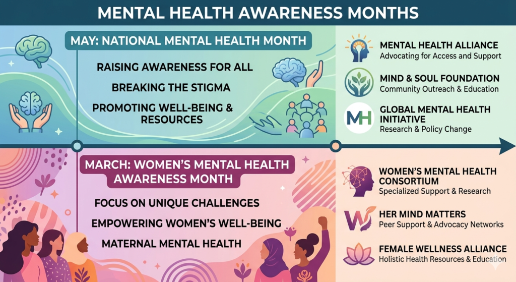 May has been National Mental Health Month in the U.S. since 1949. Women’s mental health month, as a women-specific observance, is newer and still being formalized across the advocacy landscape.